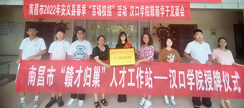 为贯彻落实中央人才工作会议精神和南昌市第十二次党代会精神,围绕市委、市政府“每年吸引10万大学生和技能人才来昌留昌创业就业”的纳才目标,进一步拓宽引才用才渠道,加强校地合作力度,吸引更多赣籍学子来赣就业创业。7月12日,安义县人才工作领导小组办公室与湖北武汉汉口学院建立了“赣才归巢”人才工作站,举办赣籍学子见面会。