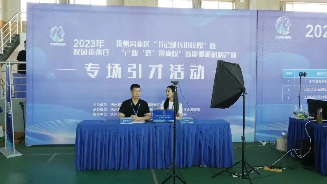6月3日上午,2023年“校园抚州日”——抚州高新区“书记部长进校园”暨“产业‘链’接高校”新能源新材料产业专场引才活动在东华理工大学体育馆举行。本次活动由抚州高新区党工委、抚州高新区管委会主办,抚州高新区党群工作部、抚州高新区人力资源和社会保障局承办,抚州高新人力资源服务有限公司、抚州人才招聘网协办,聚才人力集团提供全程服务支持。