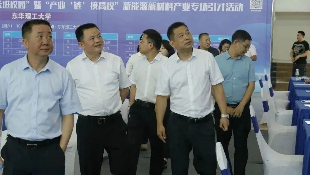 东华理工大学党委常委、副校长刘云海同志,抚州高新区党工委副书记易建文同志,东华理工大学招生就业处处长潘长云同志,东华理工大学经济与管理学院党委书记徐步朝同志,东华理工大学机械与电子工程学院党委副书记邓文娟同志,东华理工大学化学与材料学院党委副书记马建国同志,抚州高新区管委会副主任丁宝根同志,及用人单位代表,东华理工大学师生代表共同出席活动。活动由抚州高新区管委会副主任胡末主持。